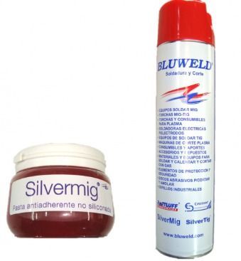 Para soldaduras MIG podemos ofrecerle el Aerosol Antiadherente Bluweld x 440 cc y la Pasta Antiadherente Super Mig x 225 cc.